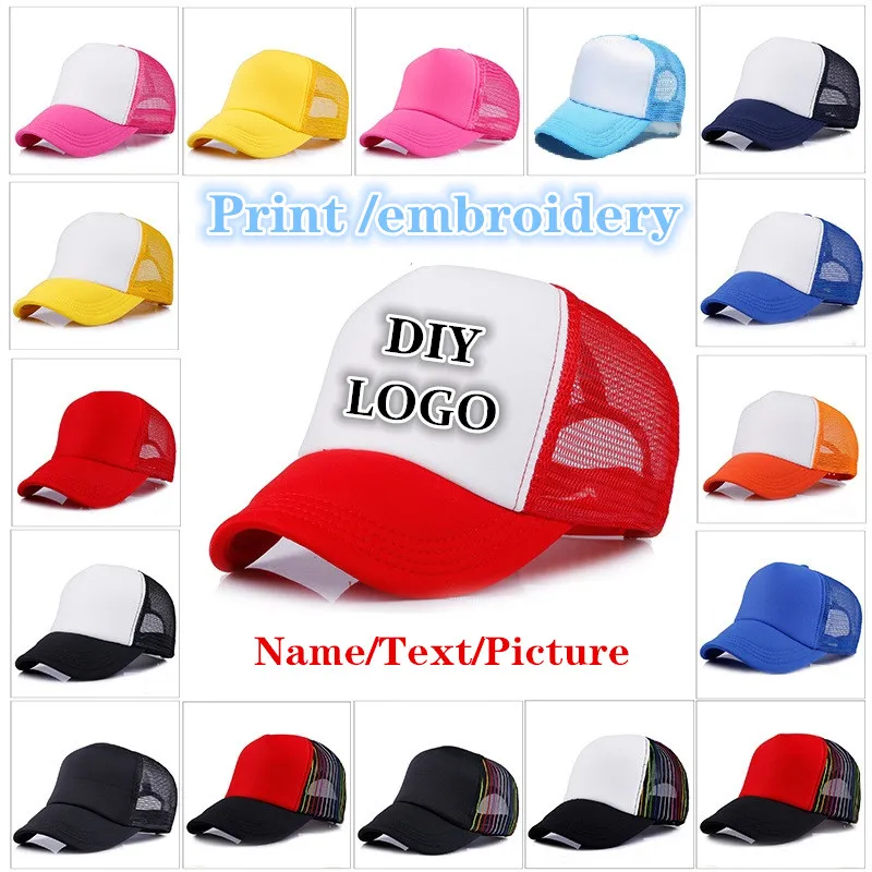 Name: Gorras de béisbol bordadas con logotipo personalizado para adultos, sombrero de camionero de malla, informal, con Cierre trasero, 1 unidad